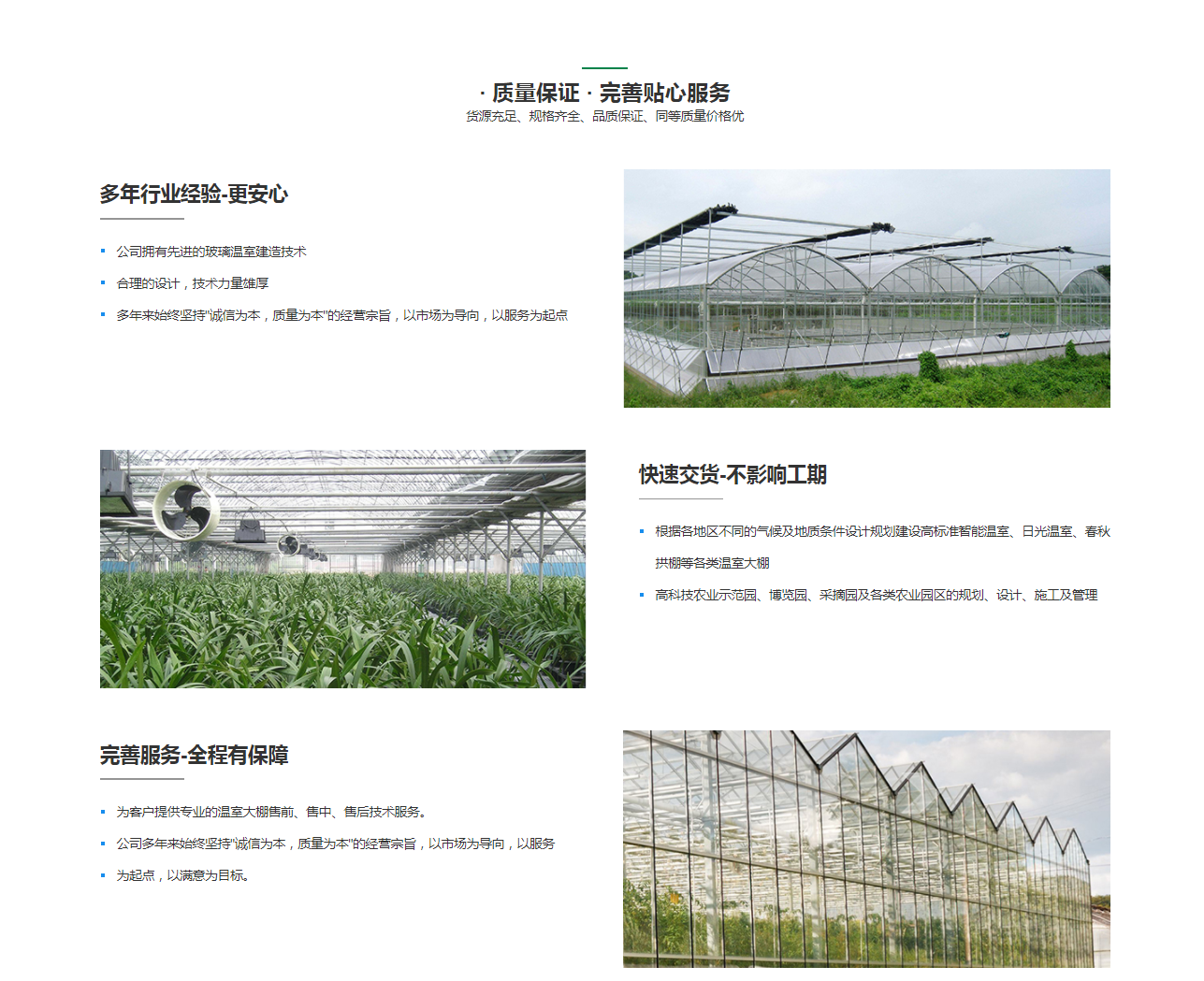 無錫永睿鴻溫室工程有限公司自創辦以來,已在多個城市地區承建了許多的農業示范園區、花卉苗木種植園、家禽水產養殖區、生態餐廳和旅游觀光園等。并以“質量過硬、價格合理、服務周到”贏得了廣大用戶的信賴。  公司主營產品:玻璃溫室、溫室工程、連棟大棚、蔬菜大棚、溫室大棚、花卉大棚、養殖大棚、大棚鋼管、外遮陽大棚、外遮陽連棟大棚等。  公司產品廣泛用于農業生產、水產養殖、食用菌培養、花卉生產、林業種苗、畜牧等行業,并配有各種規格可供選擇,還可根據客戶要求提供特制結構。  我公司擁有豐富的施工經驗和完善的售后服務,秉承著團隊精神的和始終堅持誠信做人、認真做事、科學管理,不斷開拓創新,超越自我,提升綜合素質的理念,同時公司擁有技術精湛,經驗豐富的技術團隊,將竭誠為各界朋友提供農業設施的設計及相關服務。  公司一貫堅持“品質保證、用戶至上,誠信服務”的宗旨,憑借著高質量的產品,良好的信譽,完善的服務,產品暢銷近三十多個省、市、自治區。歡迎來電咨詢!  Since its establishment, Wuxi yongruihong Greenhouse Engineering Co., Ltd. has undertaken to build many agricultural demonstration...